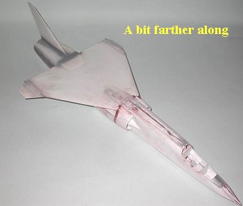 I shot a grey coat on the joint lines to track the mistakes. There were some. Puttying, sanding, painting again until I had perfect joints. The intakes and tailplanes were then glued.