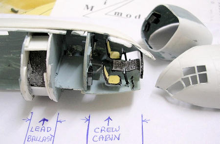 sharp pointed blade. Bulkheads were prepared and glued to the interior, crew