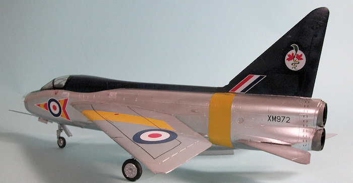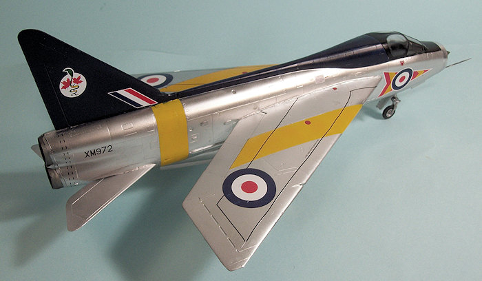 I used the Xtradecal sheet for the Lightning T.4 and did the airplane from 92 Squadron. Unfortunately, the decal sheet has you use the kit decal for the lower wing code. The first one folded up and could not be floated back to use, so this model has the wrong serial number on it since I used the decals that worked on the Xtradecal sheet. Using the kit decals for the wing walkways was problematic, and eventually I only used half the stencil decals due to this problem.