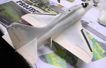 This is a nice kit of a popular single seat bomber finished in a most unique camouflage scheme for a Skyhawk which is more normally depicted in Gull grey and white colours. It was not a difficult modification to carry out but more a matter of getting all the details in place having the correct reference material.