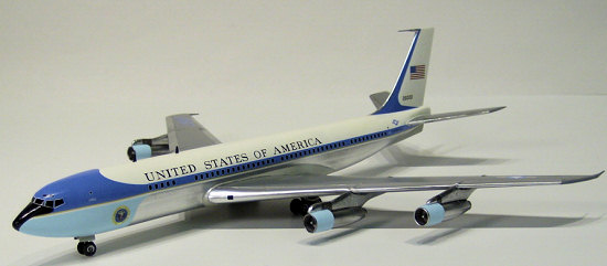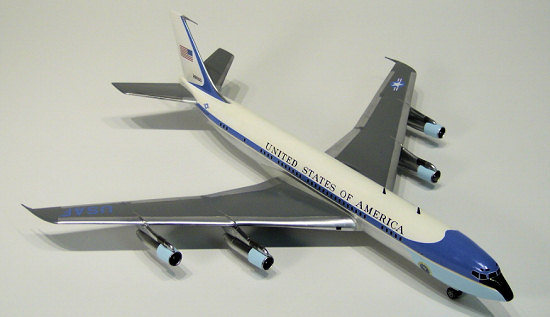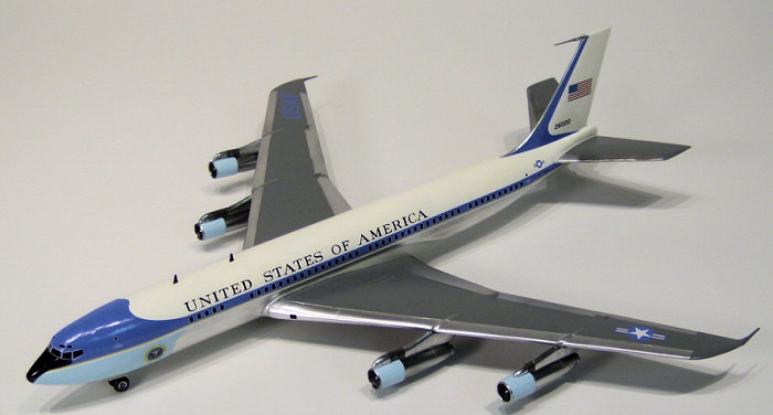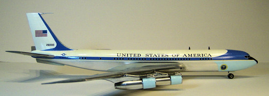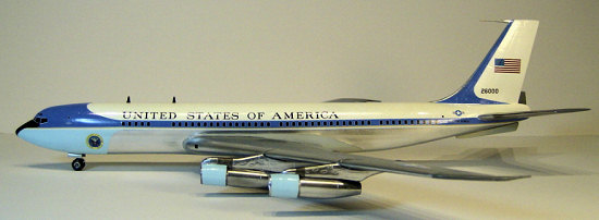 The VC-137C is a modified version of the Boeing 707 Stratoliner commercial intercontinental airliner and served as the presidential aircraft for Presidents Kennedy, Johnson, and Nixon, in Tail No. 26000, and for Presidents Ford, Carter, Reagan and Bush, Sr. in Tail No. 27000, which is now permanently on display at the Ronald Reagan Library in California.