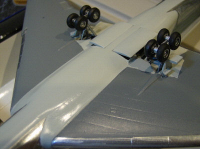 · Spray the fuselage mount area around the front wings, the center of the bottom of the fuselage, and around gear door openings on bottom of front wings.