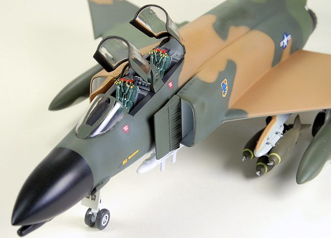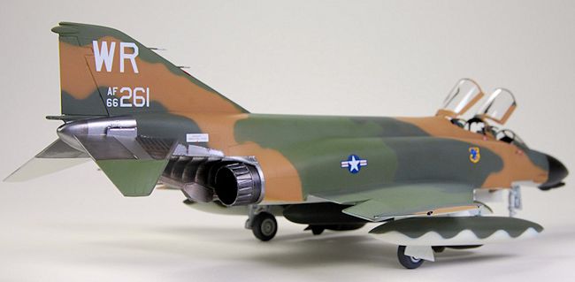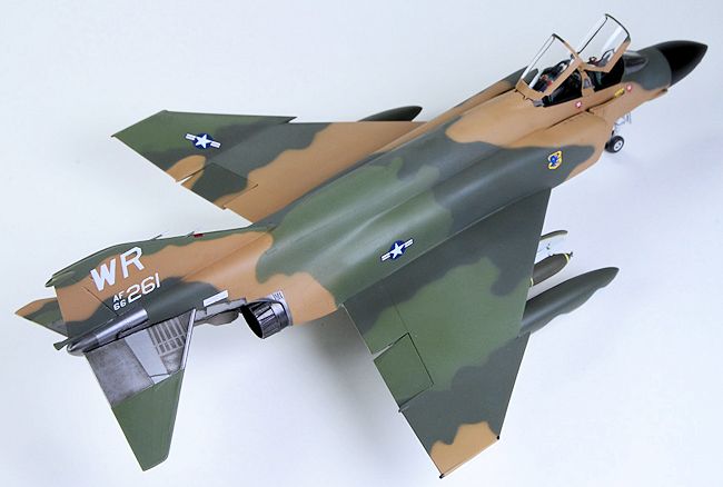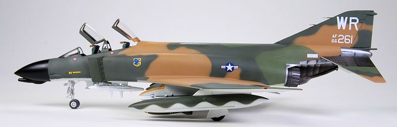 The F-4C was the USAF version of the Navy's F-4B, though there were modifications to the Navy airframe to meet USAF requirements. The biggest visible change was the addition of wider wheels and tires using a lower air pressure than those used by the Navy. This resulted in the addition of bumps on the upper wing as well as bulged gear doors to accommodate them. Similar as to what was done to Bf-109s when they got wider wheels.