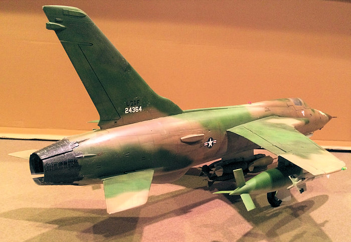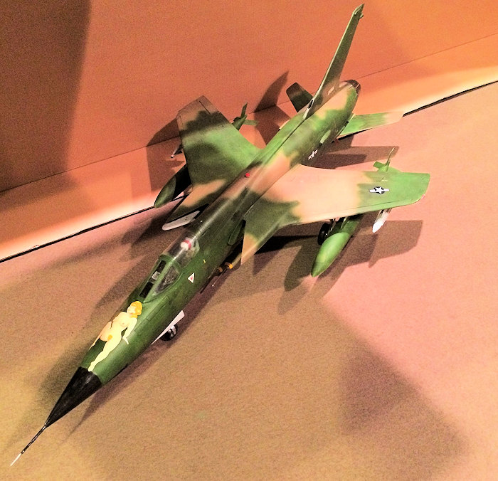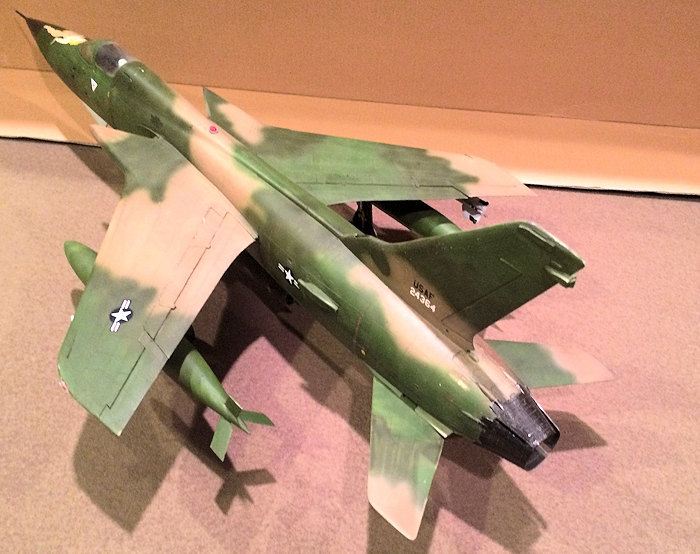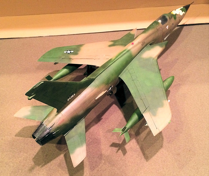 Despite all the warts and faults of the kit and some mistakes of my own doing, this is one huge kit! It is big with a capital B! It is about an inch longer than my F-4E kit and about ¾ inches longer than my F-14B. And Ms. Galore had already attracted several glances and comments and more than a few laughs when I told my friends why she was, well, what she was! You can certainly turn this kit into a real stunner with all the aftermarket parts, but even without, it still is a stunner just because of its size. And certainly, building this kit turned up a lot of the stories and sacrifices made by all the men who had to go “downtown” through places such as “Thud Ridge” and in the process, over 350 Thuds were lost and many of its pilots either were killed, MIA, and became POW’s at the infamous Hanoi Hilton! So this build was certainly dedicated to them and their courageous sacrifices although I can’t escape the little irony of facts that it was Trumpeter, a Chinese company (Specifically, Wasan Plastic Co.) that is the first and only company that did a Thud in this scale!