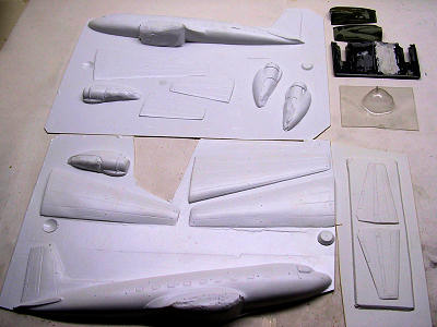 surface of parts. After preparing the two fuselage, two wing halves, two tail