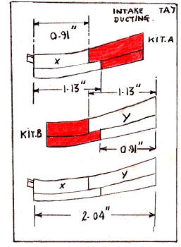 the intake ducting from both kits was cut into 4 sections (see sketch). The ones