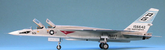 But….the Vigilante is a cool-looking airplane, no doubt. It served during the height of the US Navy’s colorful high-visibility period, so there are lots of great markings options, and it still theoretically heads the list of desirable subjects in our little corner of the modeling community. I have fond memories of the ancient Monogram kit in 1/72 scale with its working bomb ejection mechanism that I used to terrorize my mother and the family cat back in the 1960s. Besides, how many collections have supersonic US Navy reconnaissance airplanes in them? Not many, I can say for sure.