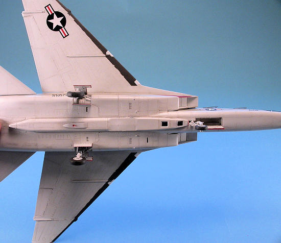Intakes: There is nothing beyond the front of the intakes – just hollow space. Aftermarket intake trunks were made by Cutting Edge Models, if you can find them. Again, the intakes are more accurate for a later Vigilante, with the leading edge extensions and the straight inlet edge.