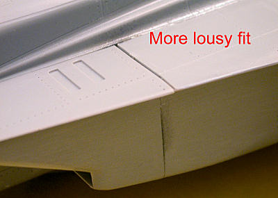 Vertical stabilizer -- The shape of the tail piece is incorrect in profile, with the trialing edge erroneously being higher than the leading edge. This is an easy fix, which can be done by cutting a wedge shaped from the top of the tail and sanding to smooth it out.