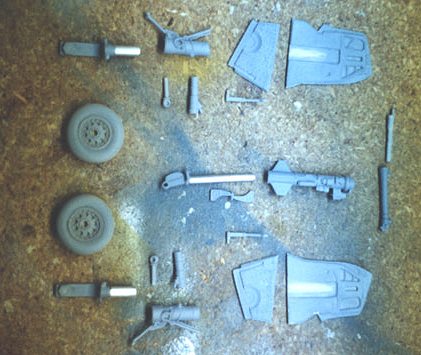 The last picture is the MONSTER before priming (see the top of the page). The yellow resin parts are CAM parts and the dark gray are Meteor intakes. This thing is so big it almost fills my work area and I hope, with a little luck it MIGHT end up as I pictured it some 25 years ago when the Revell kit and hand painting were the only game in town.