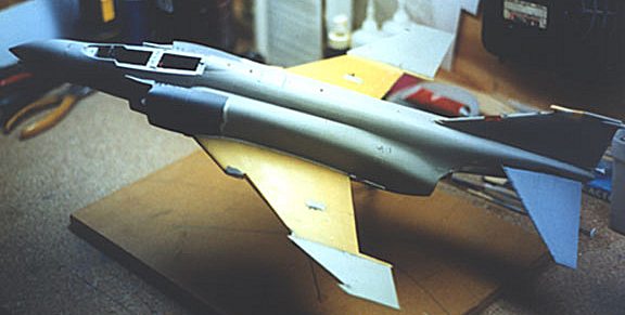 Apparently, one modeler I know read my last installment and told me that he thought I truly was crazy for doing this conversion. Let me fill you in. A few years ago when the 1/32nd Tamiya F-4C was first released, this guy decided to build one as an F-4B. On first glance it really looked great. However, when I called him to ask a couple of questions about how he made the conversion and compliment his work, I was taken back by his reply. I asked how he got rid of the wing bulges and his reply was that he didn’t !!! He said that he didn’t think removal of the bulges was worth the time as “most people don’t know the difference”……. Okay, so I asked him what he did about the B slotted stabilator and he told me that the early Bs’ didn’t have them. He was right about that but the one he depicted did have a slotted stabilator. I don’t recall if I asked him about rear cockpit mods as I was now in a mild state of shock regarding his complete lack of willingness to do a proper conversion. His paint scheme(VF-111) was really nice but the model was just a C in a B paint scheme. I don’t recall if he modified the inboard wing racks or not. I’d like to add that I only saw his model one time from about 20 feet away and couldn’t see his lack of modifications. Otherwise I wouldn’t have called him. I don’t want to make light of someone else’s work but that sort of shortcutting really turns me off. So if this project seems to be taking longer than normal, at least all the modifications will be done to the best of my knowledge and ability.