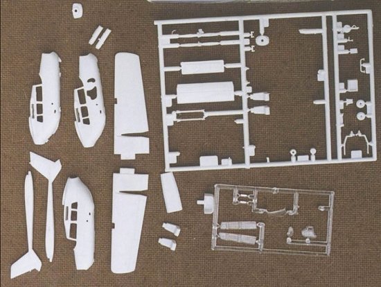 The kit is molded in soft white plastic with the fuselage halves and single piece wings, tailplane and tailbooms as main parts. Detail is a mixture of engraved and raised lines, with a bit of rivet detail. There is some flash and several sink marks.