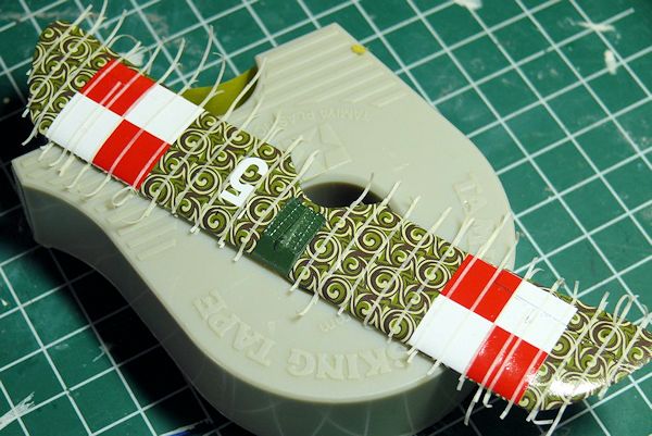 Tamiya tape (also to stick the part to my cutting mat, to prevent it from moving