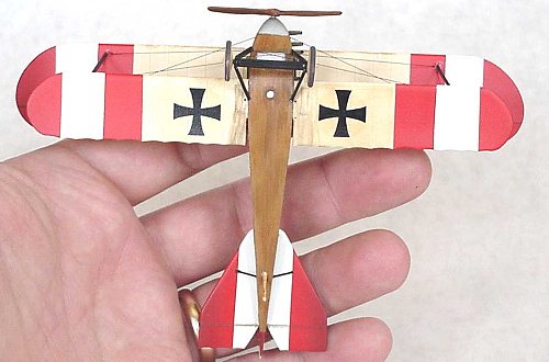 Painting is quite simple. On the aircraft that I am building the fuselage was polished wood paneling with unpainted metal panels, the wings were clear doped linen with the distinctive Red White Red stripes used on Austro-Hungarian Navy aircraft.