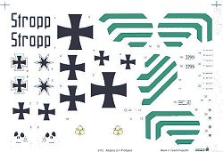 The four versions include the garish D.V flown by Herman Goering's buddy Bruno Loerzer that is on the box cover, the well-known "Stropp" - which sits today in the National Air and Space Museum - as well as a D.V. with black fuselage and lozenge wings flown by Ltn. Kissenberth of Jasta 23b, and Ltn. Georg von Hantelman's D.V from Jasta 15. All of these are good-looking schemes that will make up into a striking model.
