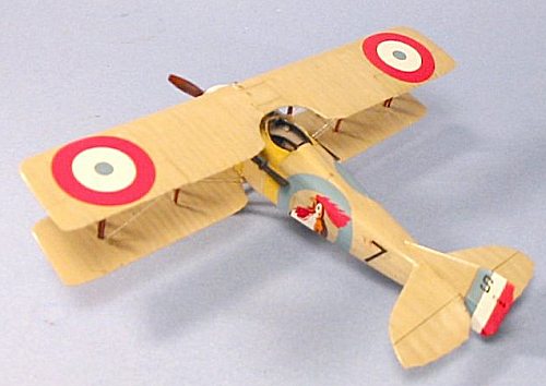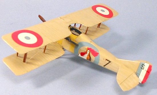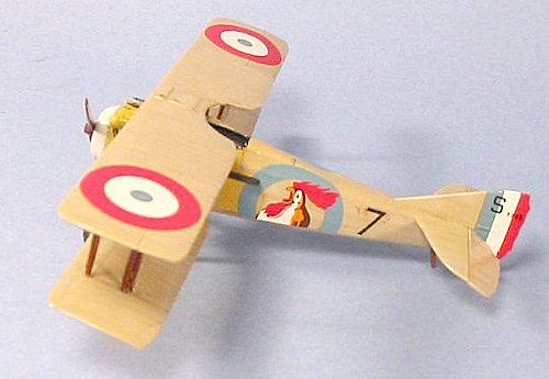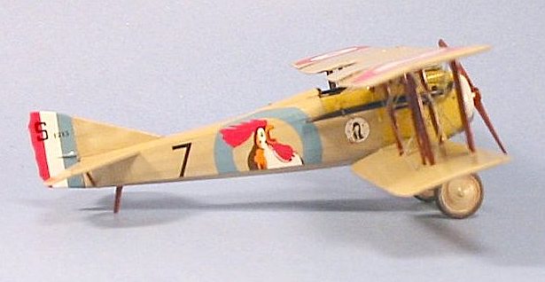I used the decals from the Aeromaster sheet for the Spad VII flown by Sgt. Jacques Rocque, with the very colorful rooster insignia. The decals snuggled down under a coat of Micro-Sol with no problem.