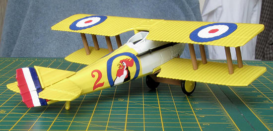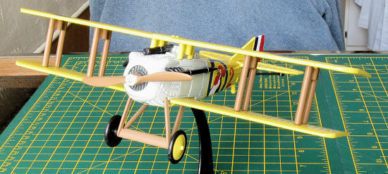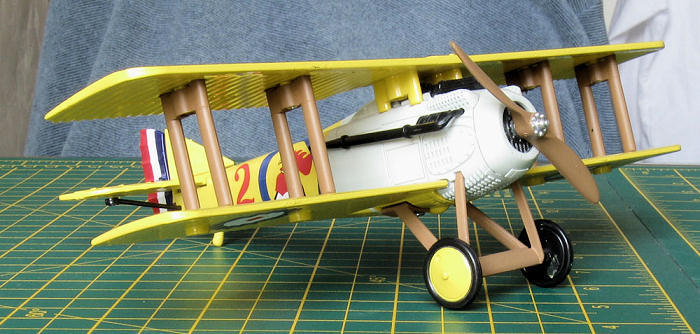 The pole struts spoil this model, however I cannot see anyone spending a lot of time “enhancing” it to try and make an accurate 1/35 scale model of a SPAD. As for the target market: the tricky fuselage juggling act and the poor fit of the lower wing screws would be frustrating for small children. It might be suitable for a joint building project with an adult (armed with scissors and drills) and an enthusiastic child? The finished model is robust enough to survive hours of playtime.