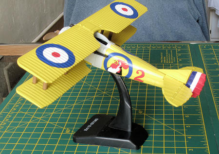 The undercarriage is clipped on at the front and held to the fuselage by a screw. The stand is clipped together and Voila! A finished “model”. Total time, including finding my drills, less than half an hour.