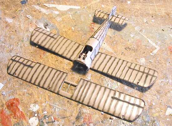 Once the fuselage, lower wing and tail surfaces were attached, it was time for painting.