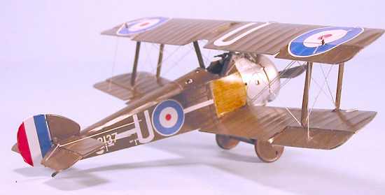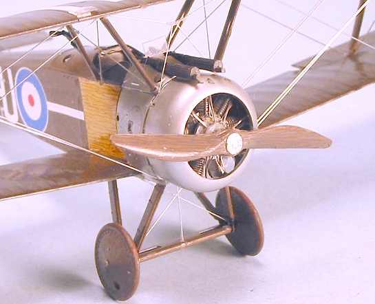 I attached the engine and its cowling, then attached the landing gear. I glued the cabane and interplane struts in place with cyanoacrylate glue, then attached the top wing.