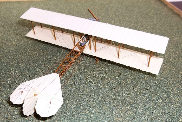 Evergreen strip and attached to the rudder, and the wing skids were made from 5