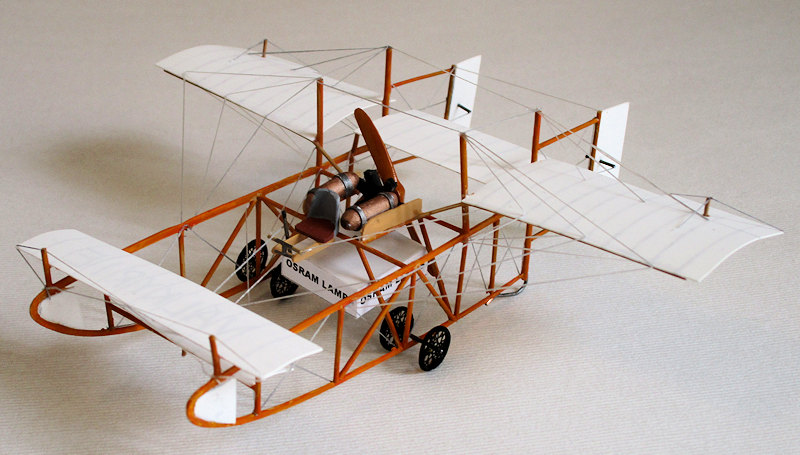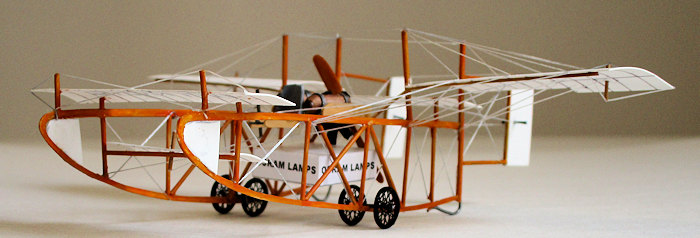 The two rudders were mounted on two short booms to the rear. A small area at the front of the side-frames has a fabric covering. A later variant could carry two people side by side and had 50hp Gnome rotary engine. The Type C could seat three people. At least twelve were constructed altogether, the last in early 1912, an unusually high figure for aircraft of this period, and many had dual controls. It was considered tricky to fly, but most of the aircraft produced were used as trainers.