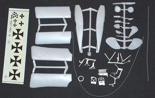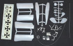 The instructions are more or less adequate, in other words basic. On one side you have an exploded drawing of the kit and on the other side you get construction notes. Also included are little templates to cut the interplane struts and other items that will need to be fabricated out of the supplied stocks. On the back of the box you will find nice three view drawings. I find that if you have these enlarged to scale you can build the model on them. This allows you to make sure that all the parts are lined and squared up. One more thing to keep in mind is that the molding gates on some of the Pegasus kits at times extend into the parts, so care must be exercised as you clean up the plastic parts.
