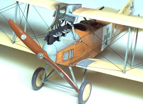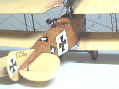 This is a kind of easy kit to paint since the early Albatros aircraft were not painted. That means that all you need to do is paint the fuselage wood, the wings a tan linen, and all the metal parts gray.