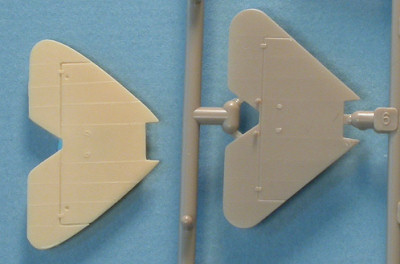 The last area that Roseplane addresses is the ailerons. Though they have reshaped the trailing edge to match the prototype, they forgot the larger balance horns. I ended up using the Roseplane wing as a guide to reshape the kit ailerons and adding plastic card stock to the balance horns and reshaping them too. While I was at it, I cut and repositioned the ailerons.