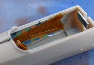 with Humbrol Leather #62 and finally a thin coat of Tamiya Clear Yellow. Then