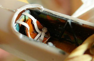 the rear fuselage from copper wire, but after 10 attempts to attach them without