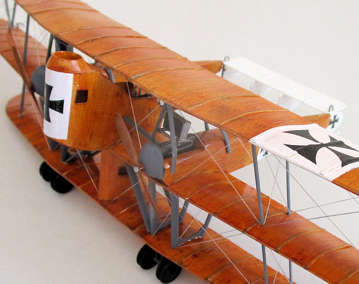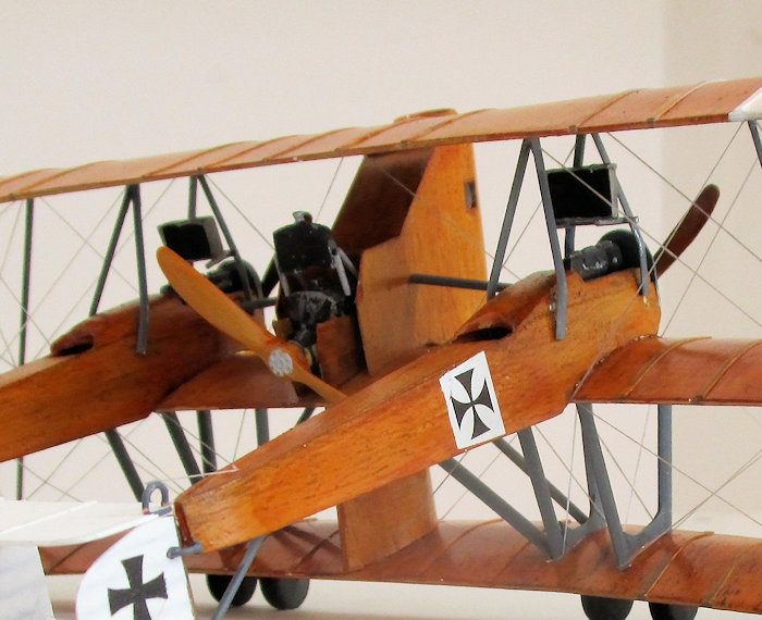 smaller wooden propellers. Between the middle and lower wings, was a fully