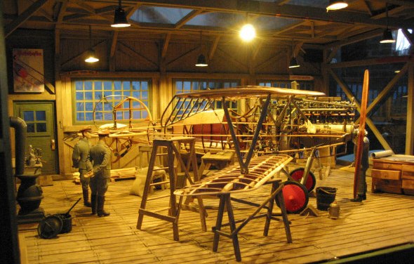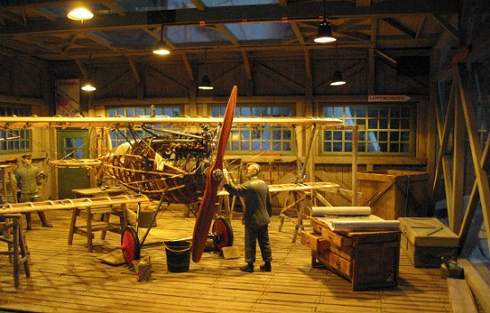 The diorama was lit much like a stage. The lighting emphasizes the aircraft itself which downplays its surroundings.