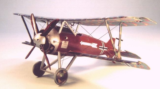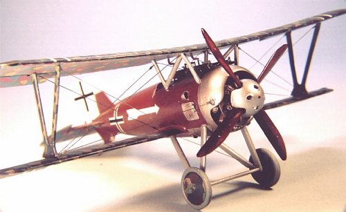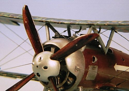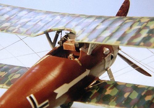 Final assembly of the kit was relatively easy. I glued the interplane and cabane struts in place, and allowed them to dry overnight. I also “pre-rigged” the aircraft by attaching one end of the rigging at various points on the fuselage and wings. I use invisible monofilament thread and attach it with Zap-a-Gap. If left to dry overnight, it can be pulled taut without fear of it pulling loose from its attachment point.