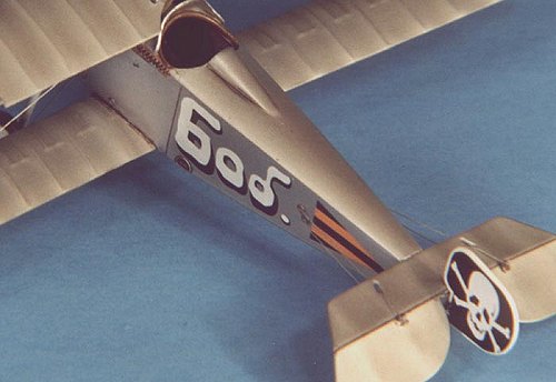 The aircraft modeled is one flown by Kpt. Brodovicz of the famous 19th (Death or Glory) Squadron of the Imperial Russian Air Force. There is some controversy as to whether this aircraft is in reality a Nie17, but I chose to model it as a Nie23 since I already have a ton of Nie17’s! From the photo’s I have seen of the aircraft it is difficult to tell for sure, although the modified rigging scheme may indicate the reinforced wings of the Nie23. At any rate, how could I not build a model that has my name "Bob" emblazoned on the side! Reportedly, "Bob" is a Russian nickname for Boris.