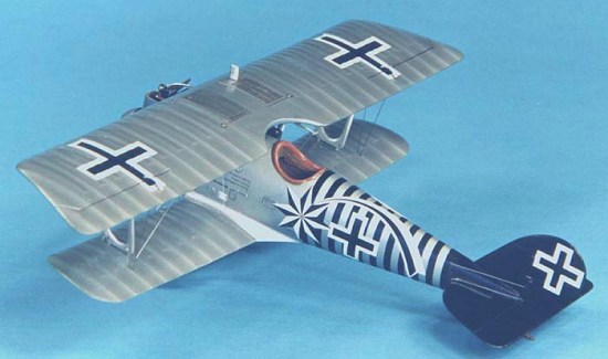 This kit from Eduard represents the last major variant of the D.III series, the D.IIIa. The aircraft modeled is that flown by VZFW Max von Holtzem from Jasta 16.