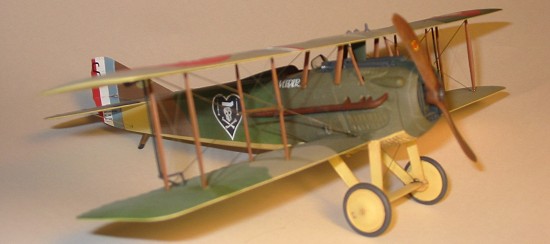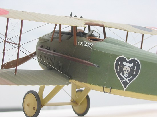 I built my model as Nungesser’s plane, primarily because it seemed a little less common than Rickenbacker’s plane. (Recently, xx has released a nice sheet of markings for this kit, so now there are more choices.) On a model such as this, I find it easier to all the painting and decalling before attaching the top wing.