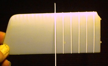 I was going to begin construction with the fuselage interior and engine, but when I checked the wing panels against the drawings I noticed there were 12 instead of 13 ribs. Well that just wouldn't do for me. I knew that I would never even see the finished model, I'd only see 12 ribs. Personal problem, I admit. The rib detail on the wings is some of the finest I have ever seen in any styrene and many modelers will choose to leave it as it is. Not many folks will call you on the number of ribs, especially ones as nicely done as these. Like I said, a personal problem.