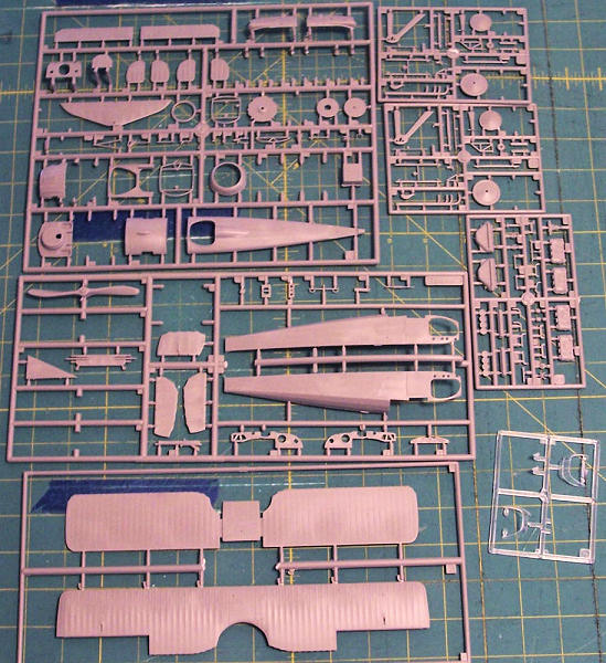 Oh, I forgot to tell you, the kit includes only parts for a late enlarged cowling version. The only problem here is that the radiator is exposed and it has ABSALUTLY NO DETAIL on it. I’m not kidding here, it is just a Hexagonal slab with a central bump for the propeller shaft. I guess that you can fix this with a piece of fine screen.