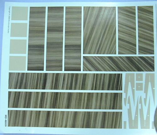 by providing sheets of decal for each different sub-assembly; with the streaks