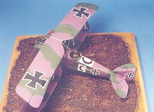 I used Poly Scale paints for the upper camo and Gunze for the underside. The model is painted per the kit instructions. For the Mauve, I used German Mauve, while the green is Dark Green. The pale blue underside and struts are done using Gunze RLM65 Hellblau. Nothing special to mention here. I Finished up with lots of Future for decal application.