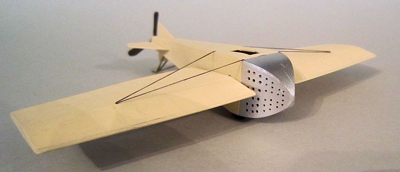 And now the bulk of it is over. Carefully align the wings to the fuselage, somewhere at the mid-height level. I splodged the spar ends with some felt tip marker just to get a rough idea of where the location holes should be drilled. Drill them, and fix the wings, noting that both leading and trailing edges stand proud of the fuselage. Then fix the tailplanes, fill the rear of the fuselage with a small square of plastic, scavenge an old propeller from the spares bin, sand it down to size, paint a dark brown, with varnish finish, and glue in place.