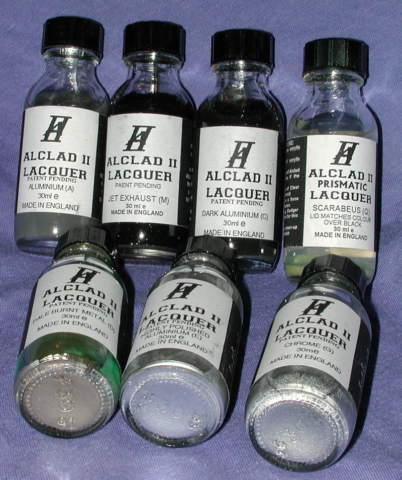 New to many of us in the US is Alclad II. Like most other applications, it is a lacquer, already thinned, and is designed to be airbrushed on. It comes in a variety of metallic shades and the line includes a chromacolor-type of prismatic paint that car modelers should like. Each 30 milliliter bottle comes with instructions on how to use the paint as well as having some ball bearings in it to assist in proper mixing.