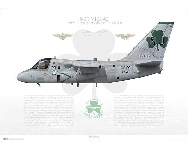 The owner contacted me to see if I would like to review one. After looking through his catalogue, I decided to choose a print from the unit with which I ended my Navy career, VS-41. The aircraft is in the TPS scheme and portrays the aircraft when the unit was disestablished in 2006. Though different in some markings and equipment from when I retired in 1993, the print is quite accurate. I was sent the smaller of the three sizes and the actual paper measurements are 18 x 13.5 inches. This leaves room for it to be cropped in order to fit it into a frame. The print includes a nice write-up telling about the unit. To me, this is the only place I would improve it as the print is small and quite difficult for me to read as it is printed in a light/medium grey. Printing this in a more contrasting shade would, for me, be better.