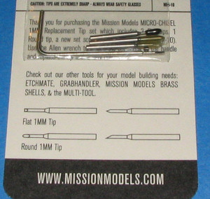 In addition, they do a 1mm replacement tip set. This includes three tips; a pair of flats and a round (which is useful for digging grooves). These will allow you to get into even tighter places and do more detailed work. A 2mm set (not shown) is also available.