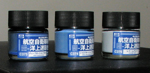 Not surprisingly, Gunze Sangyo decided to bring out a set that offers these colors as well as a medium grey for the radomes of those planes that needed it. These colors are part of their Mr Color line, which means they are not acrylic lacquers but straight lacquer paints. Gone are the neat tops with the grab handle on top of them and a return to standard bottles, this time all of which have a black cap.