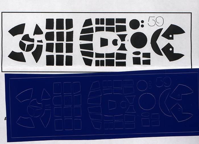 About a year ago, from the Canadian North came E-Z Masks. They do just that and are great for multiple framed canopies of WWII aircraft. This particular one is for the DML Ju-188, a particularly nasty canopy to mask due to the many compound curved panels. As you can see, the material is colored vinyl that has some stretch to it. As a result, it is a one shot material. It leaves no residue and the leftovers can be used on more simple canopies like that of a Bf-109 or Mustang. In addition to the mask, there is a template showing what each one looks like. The mask is from front to rear, in this case front is on the left.