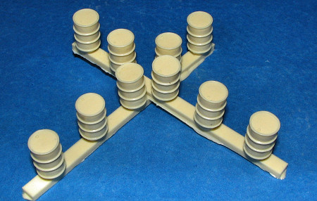 I always like it when new companies come on the market. Flying Fish Models is based in Germany and has started out with some most interesting accessories and sets. This particular set consists of Oil Drums in 1/72 scale. They are molded in resin and the level of detail is very good. Some may think the raised ridges are a bit much, but they look fine to me and you can sand them down if you wish. There are ten in this set on two resin sprues. Once removed from the pour stubs, they can be added to any diorama or just to make your display base look a bit less barren.