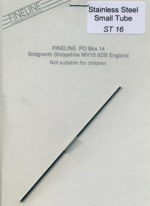 Fineline has four different sizes of stainless steel tubing, each 100mm long and of such a size that one can sleeve the smaller sizes into the larger. The sample sent was the largest size of 1.65mm OD (Outer Diameter), but they offer three smaller sizes. ST19 is 1.10mm OD, ST 23 is .63mm OD and ST 30 is the smallest at .30mm OD. These are all available direct from the link below.