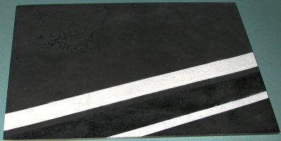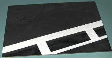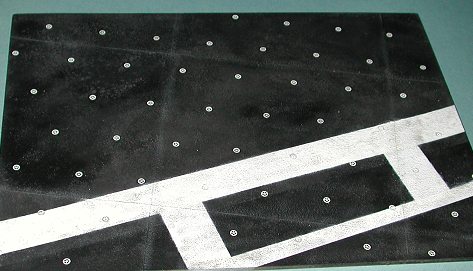 Using the photo that comes with it, I proceeded to paint the foul line (the white parts). This was done in three steps. First the big wide line, then the narrower line and finally the wide connecting lines. Don't sweat the actual dimensions unless you are really anal about it. There is a standardized size for these, but 99.95% of the people out there have no clue as to what it is and won't bother you about it. As you can see from the pictures below, it doesn't take long to have something that looks very nice. I used Testors Model Master gloss white, but a flat white would have worked just as well. I just didn't have any.
